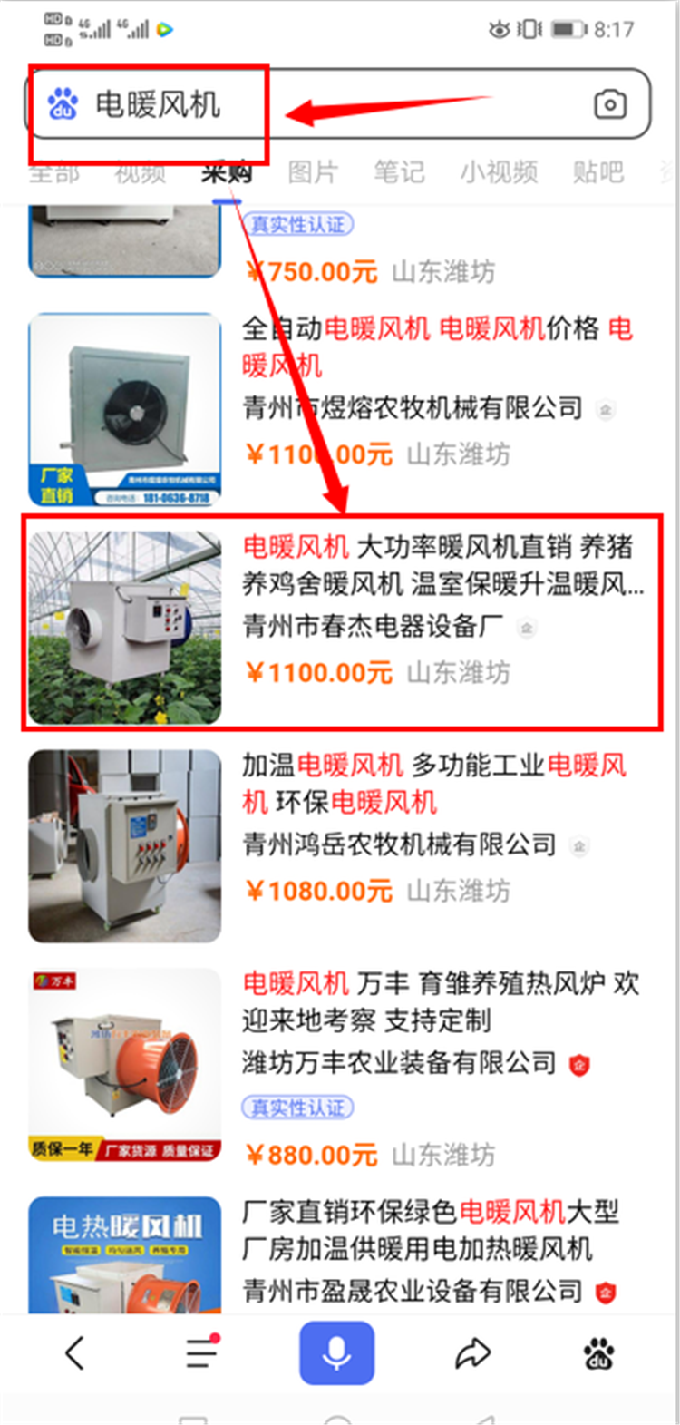 青州市春杰電器設(shè)備廠 ,山東專業(yè)生產(chǎn)暖風(fēng)機,電暖風(fēng)機,養(yǎng)殖暖風(fēng)機,大棚暖風(fēng)機,育雛暖風(fēng)機 的公司,大量的關(guān)鍵詞獲得百度愛采購首頁排名,現(xiàn)在大部分詞展現(xiàn)良好,pc端和手機端同步全天展現(xiàn),后臺大量詢盤,提高成交率,現(xiàn)在仟漁推出百度愛采購競價,百度首頁固定展現(xiàn)專框。百度推出百度愛采購賣家版,手機app形式,后臺數(shù)據(jù)一鍵掌握。手機app與客戶詢盤無縫連接,客戶信息無一遺漏。