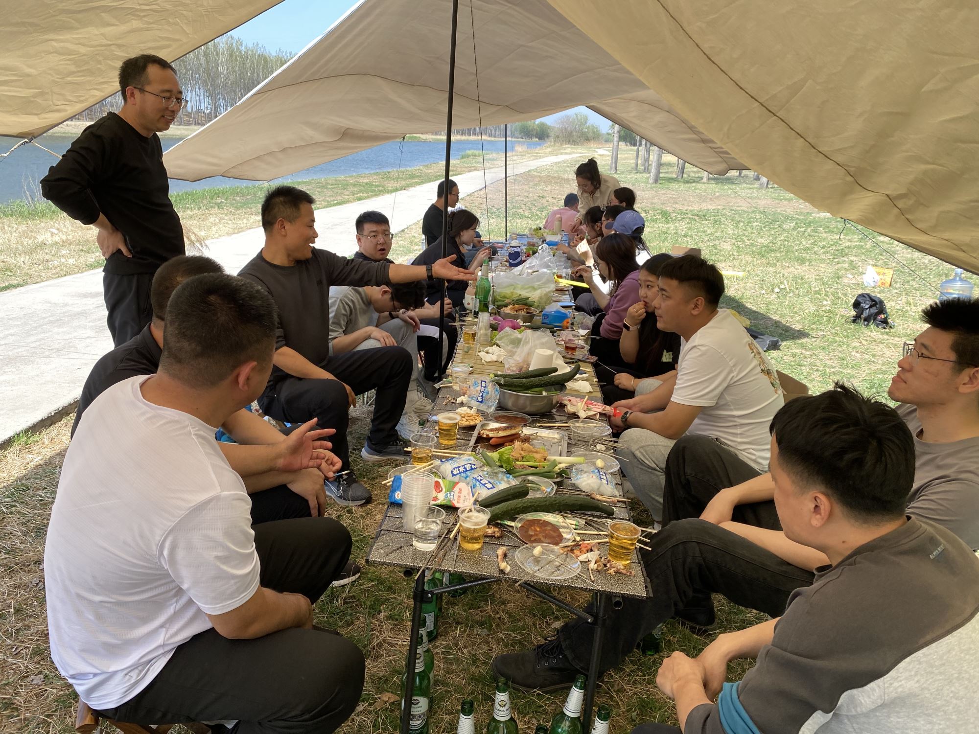 此外,燒烤團(tuán)建還可以為團(tuán)隊成員們提供一個放松身心的機(jī)會。在輕松愉快的氛圍中,大家可以暫時拋開工作的壓力與煩惱,盡情享受美食與歡樂,娛樂方式多種多樣:放風(fēng)箏、打撲克、做游戲、看狼狗趕羊發(fā)呆等等等。