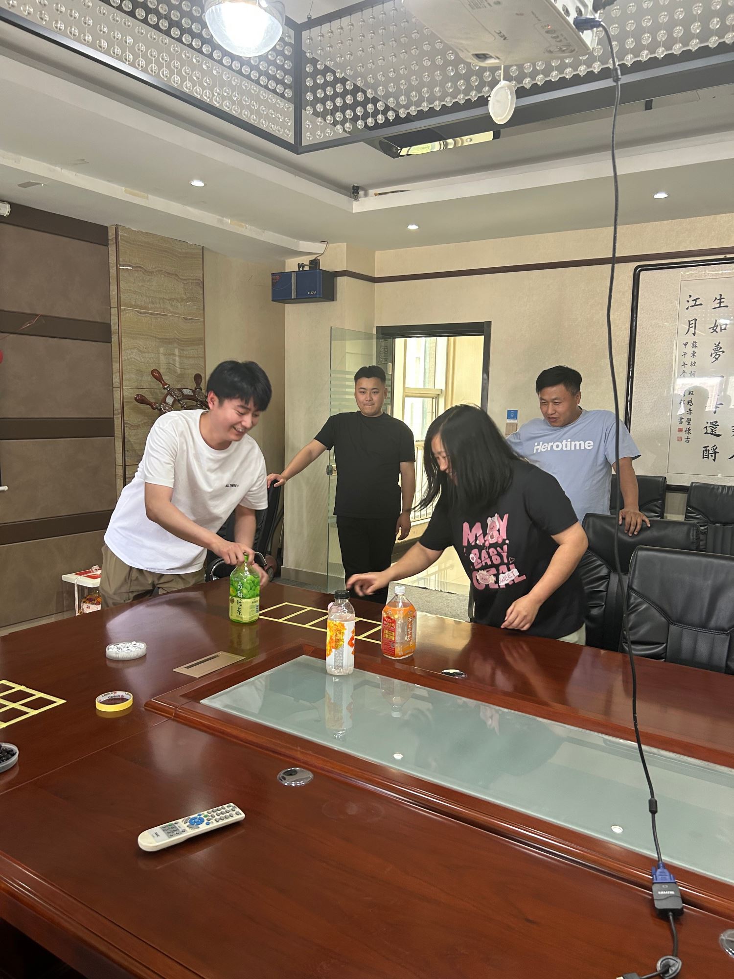 生日會一開始,“瓶子正立大挑戰(zhàn)”迅速點燃了現(xiàn)場氣氛。大家分成兩組,依次將手中的瓶子拋向桌面,努力讓瓶子以正立的姿態(tài)停下。有人一拋即中,引得陣陣喝彩;有人屢屢失敗,卻也不氣餒,一次次重新嘗試,現(xiàn)場滿是歡聲笑語。