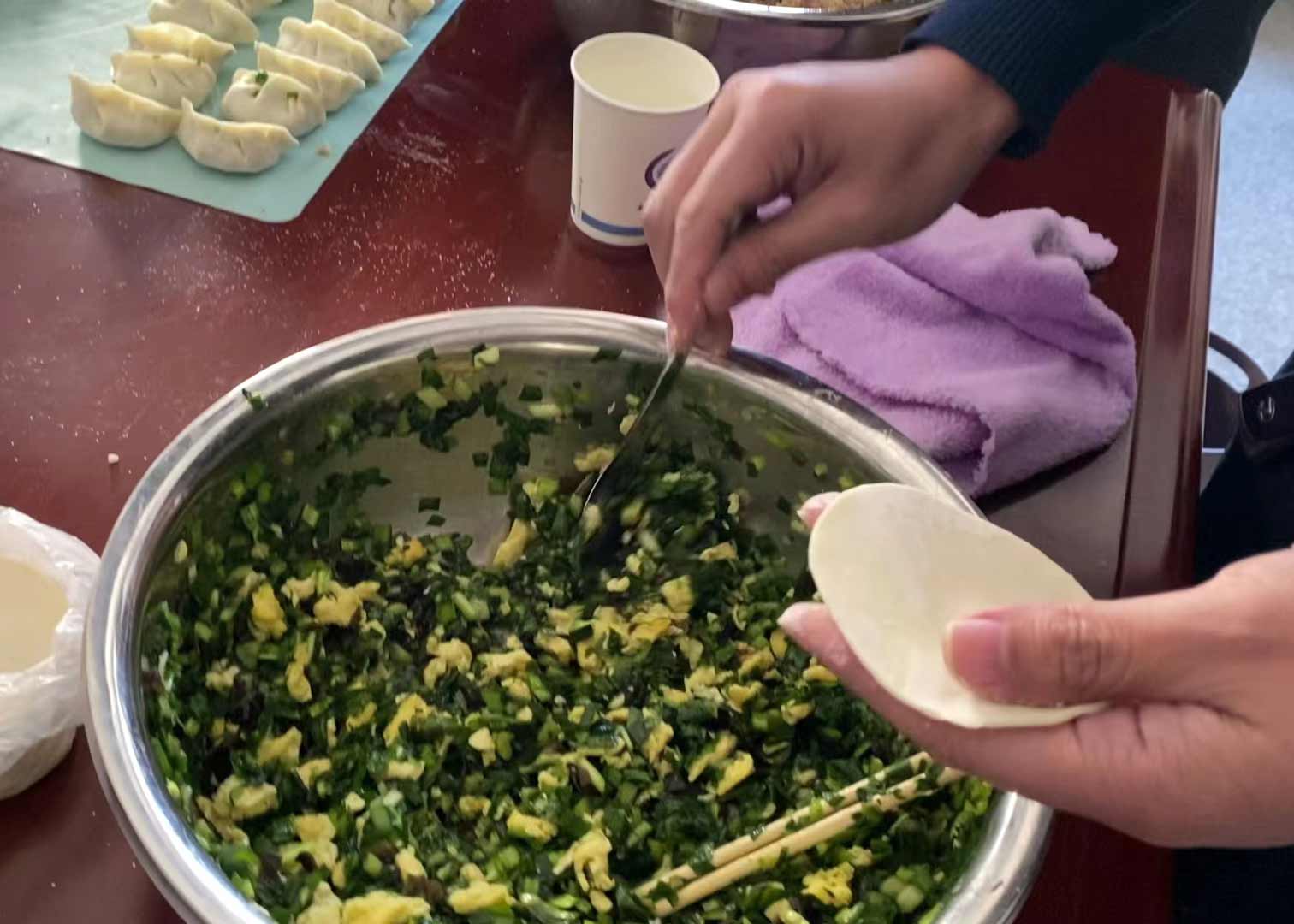 大家分工明確,餃子餡都準(zhǔn)備了好幾種
