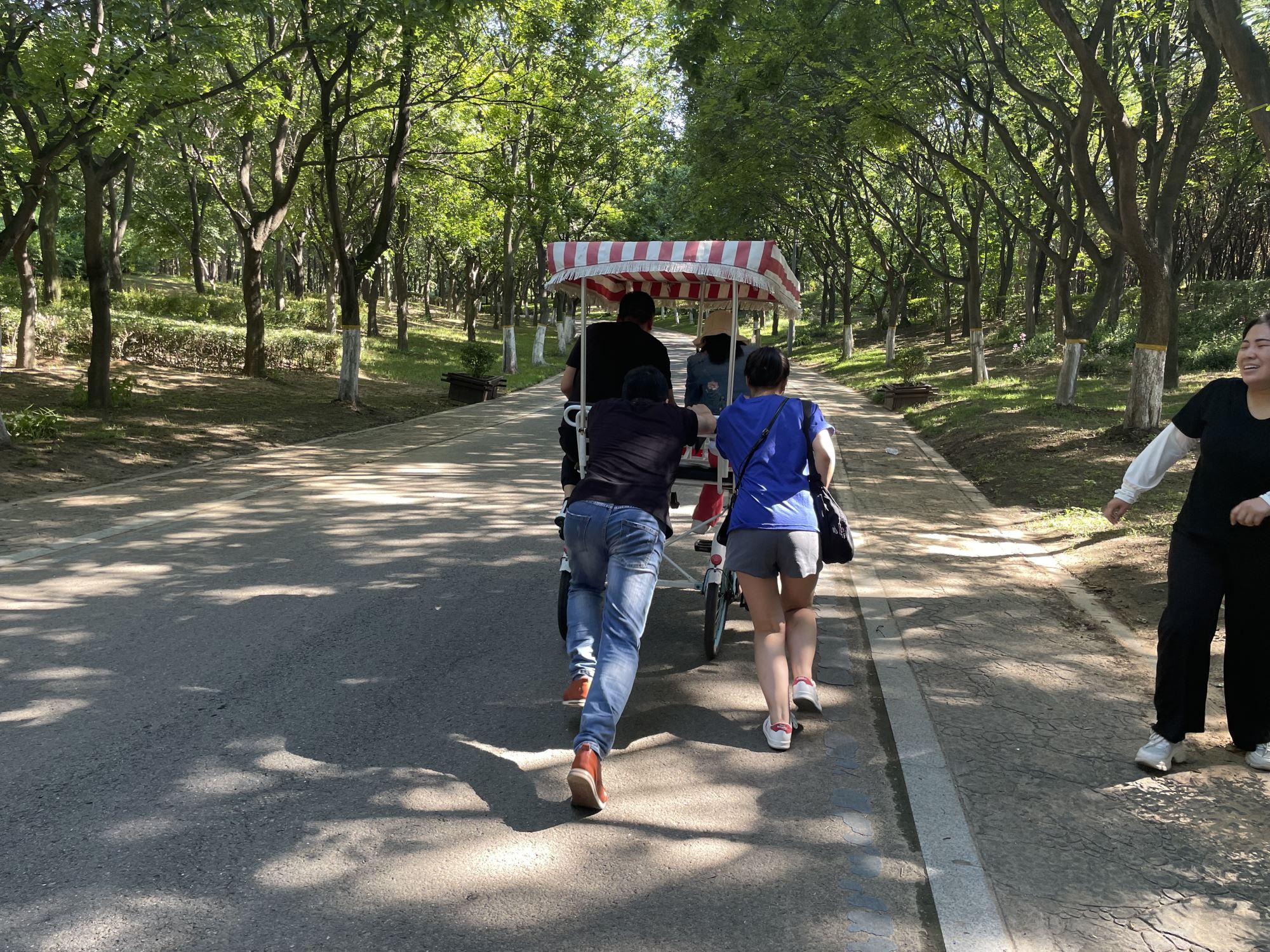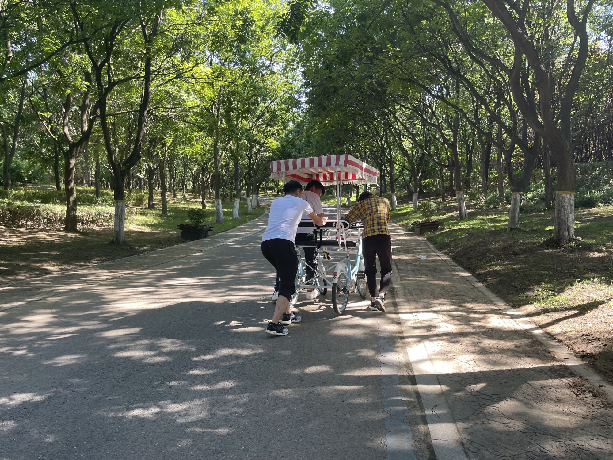 本周六的下午公司在濕地公園舉辦了團(tuán)建活動,首先舉辦的第一項活動是兩人共騎單車,這需要小伙伴之間的默契配合才能完成,共分成了兩大組,經(jīng)過緊張追逐的比賽后一組獲得了勝利。