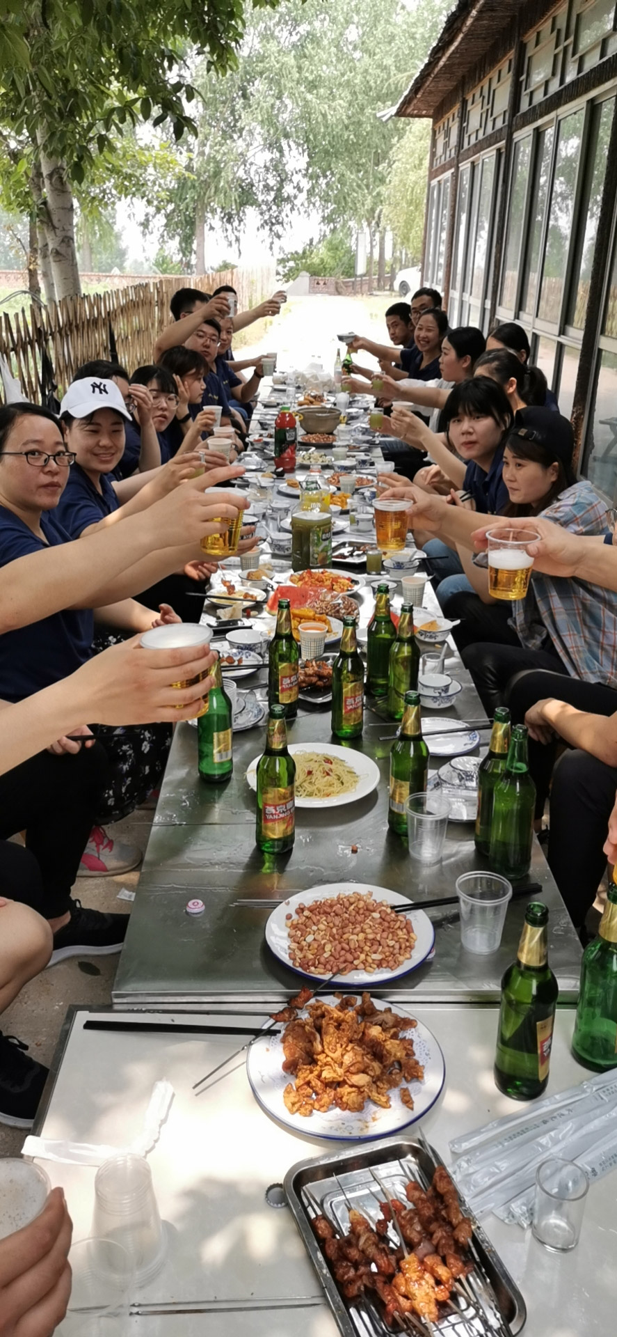 激烈的挑戰(zhàn)過后,大家開始準(zhǔn)備材料進(jìn)行燒烤,每個人都有分工,串肉切菜等等一系列忙得不可開交,有說有笑好不熱鬧,最后吃到自己親手參與的午飯,真香。